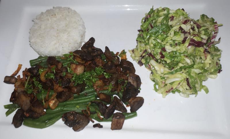 Garten-Chiakohl, Schupfnudeln und Seitan-Hacksteaks, dazu Zuckerhut