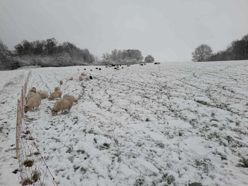 Tja. So ist das, wenn der Winter seine Zähnchen zeigen will. Alles nur eine Frage der Organisation. Und Mithilfe der Wollies. Bin gespannt, wie das laufen wird. Dummerweise liegt unten kein Schnee. Ich hoffe, sie biegen nicht in die Zwischenfrüchte oder gar den Raps ab. :P