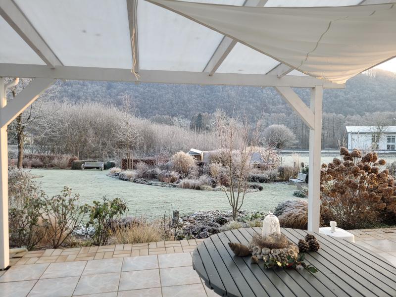 Ich sehe zum ersten Mal seit Jahren Frost im Garten.