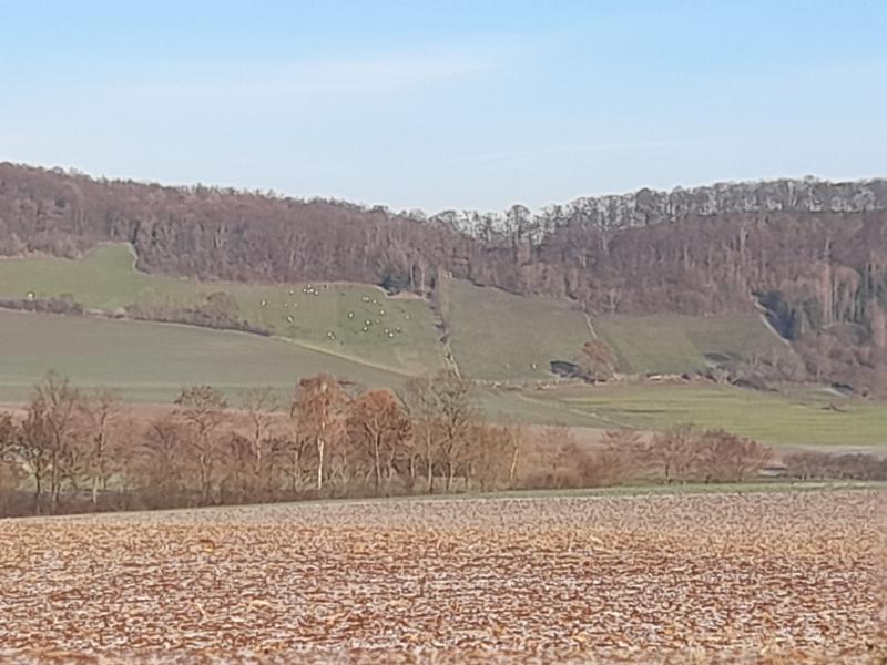 Anbei ein Bild der großen Herde "am Berg". Von der neuen Böckefläche aus betrachtet. Wattebällchen mit Fernwirkung - was man leider auf dem Bild kaum erkennen kann