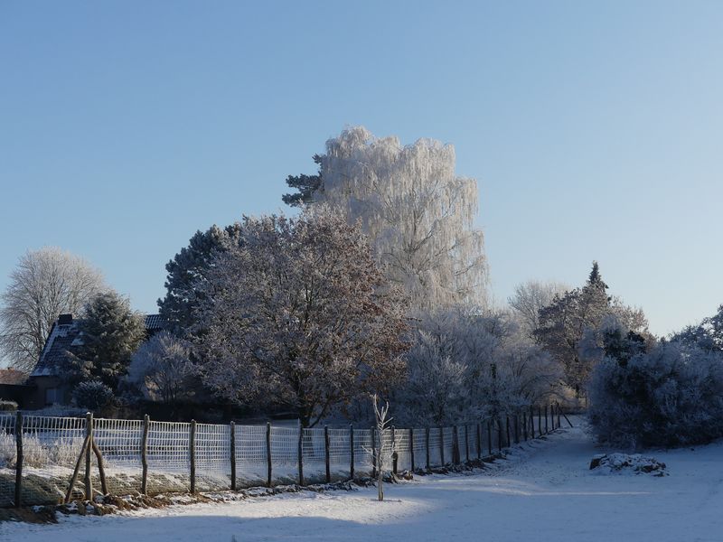 Letzte Nacht ging es bis -10,8 Grad runter, das zauberte noch mehr Eiskristalle und heute scheint sogar die Sonne. Um dieses Jahreszeit erreicht sie dann aber kaum noch was im Garten.