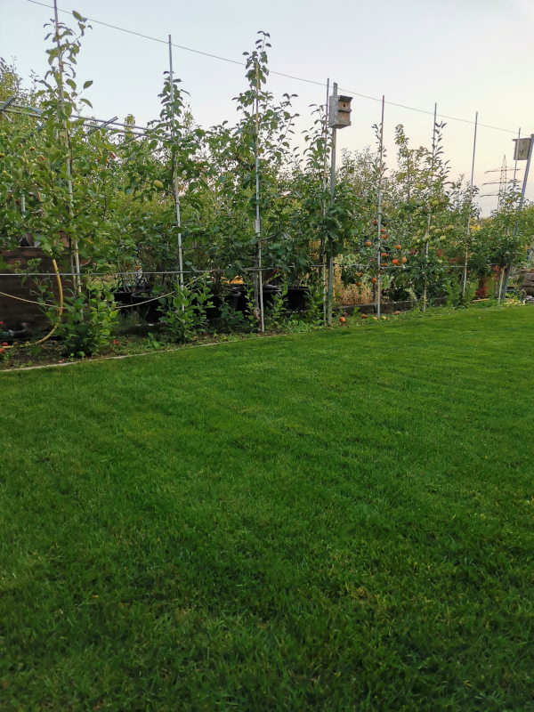 Nicht betreten ist schwierig. Es soll ja Rasen für unsere Kinder zum Spielen auf die Erde. In den Beeten lässt sich das vermeiden, aber auf dem Rasen leider nicht.