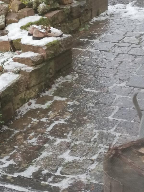 Der Gang zu den Vogelfutterstelen war sehr rutschig, die Vogeltränken tauen auf.
