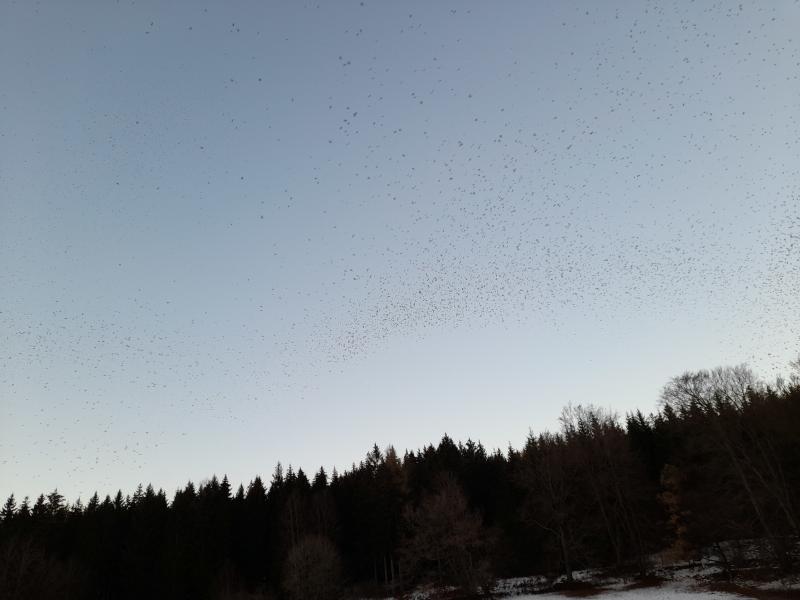 Waldschrat müsste den Anblick kennen. Sie sammeln sich jeden Abend zum Schlafen dort. Das ist nur ein Schwarm von vielen