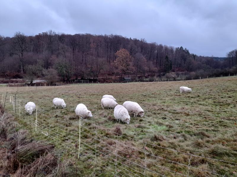 Die Schnucken habe ich gestern mit dem Hammer weiter gezäunt. Das ist echt ärgerlich. Das Futter vor der Nase, nur zäunen kann man nicht oder kaum. 2 Gruppen stehen auf Heuversorgung. Beim Rest versuchen wir bis Sonntag so um die Runden zu kommen. Die Schnucken eben dann in kleinen Häppchen weiter. Die große Herde ist sehr gro´gezäunt, bei den Böcken müsste es auch reichen, die sind ja 4 weniger als zuvor...