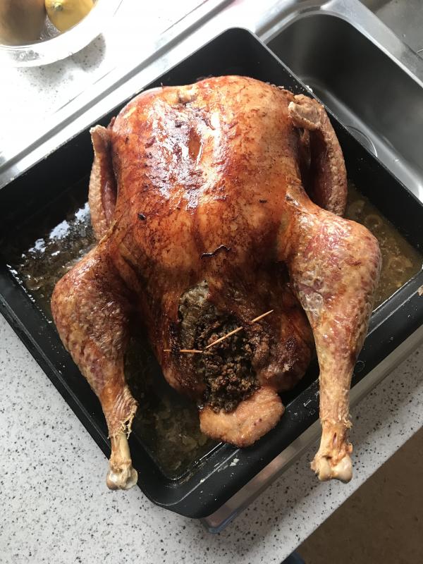 Am 1. Weihnachtsfeiertag Truthahn mit 8,8 kg und Maronenfüllung.