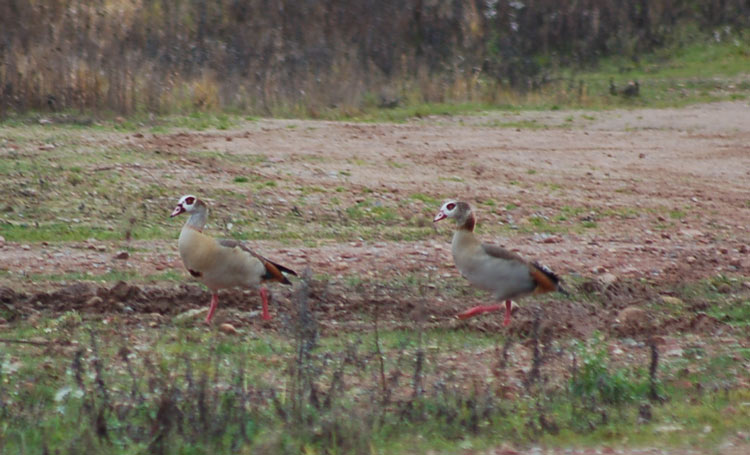 Hier ist es heute nur grau und 5 Grad plus. Bei meinem Spaziergang heute Nachmittag habe ich diese beiden scheuen Gänse getroffen. Leider ist die Bildqualität grottenschlecht, da es viel zu dunkel war und ich nicht näher ran gehen konnte (Gänse und ich standen wie bei High Noon auf einem Feldweg und ich habe ganz langsam die Kamera aus meiner Tasche gezogen). Nach meiner ersten Internetrecherche könnten das Nilgänse sein. Stimmt das?