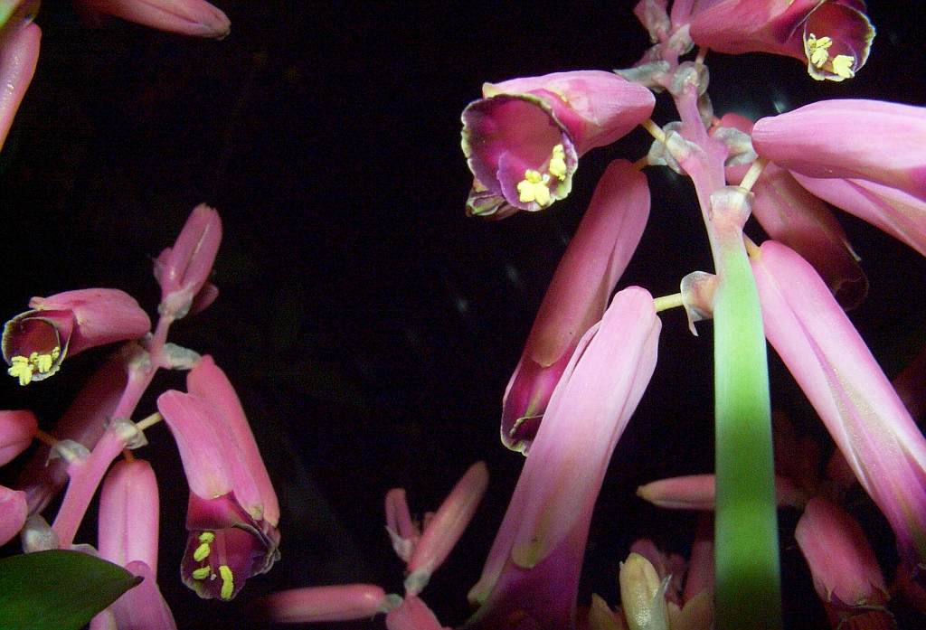 Blick von unten in die Blüten der Lachenalia bulbifera