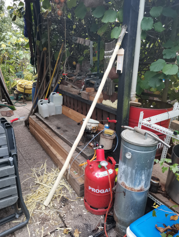 Ich habe demletzt einen Stiel aus Walnuss geerntet. Den brauche ich für eine breite Blatthacke. Deren Stiel ist nach wohl 50 Jahren hinüber. Der Walnussstecken darf nach dem schälen jetzt bis nächsten Winter abtrocknen. Dann geht es weiter.