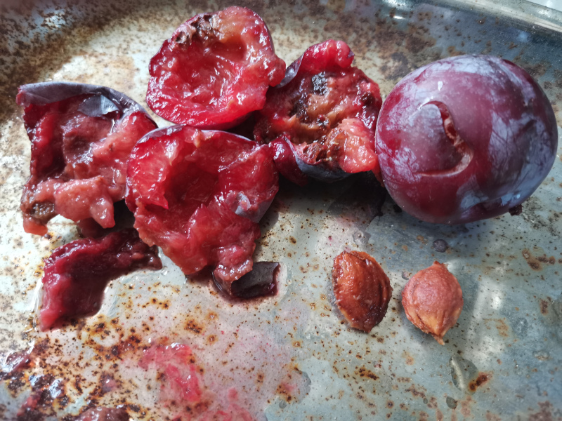 Im Nachbargarten steht seit einigen Jahren eine Pflaume, es weiß keiner, was es ist. Sie trägt nur selten und dann nicht besonders viel.