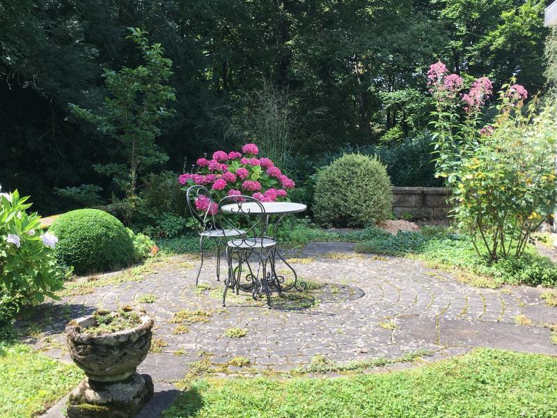 Der runde Platz mit der gebogenen Mauer und der eingewachsenen Gartenkulisse dahinter ist jedenfalls sehr schön :D