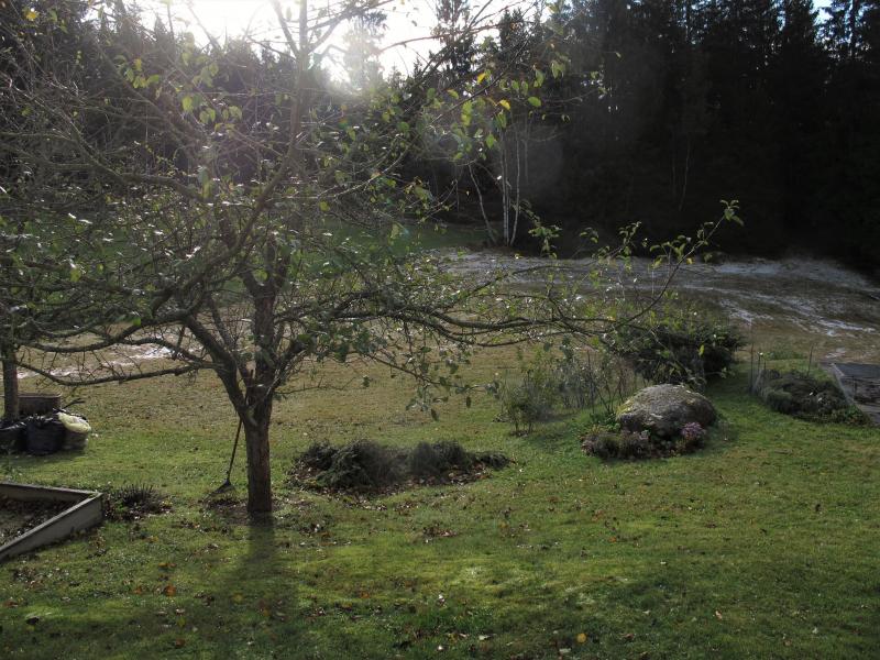 OKtober, Äpfel - da war ich ein Weilchen nicht dagewesen. Im Hintergrund die Fichtenäste zum Abdecken der empfindlichen Rosen.