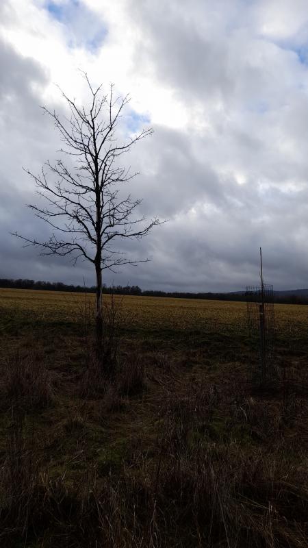 Nun gut. Es fing sehr hakelug an. Ich musst zu einer anderen Baumschule, da mein Baumdealer im wohlverdienten Urlaub ist. Wegen meines engen Zeitrahmens und der Lammzeit muss ich indes Zeitfenster nutzen. Vorgestern habe ich also 4 Bäume bestellt. 2 bis 2.50 m bitte. Kein Problem, hieß es. Ich also heute mit Hänger hin - stand ich vor Bäumen doppelter Größe. 250 Eur das Stück. Also nee, die nicht. Ja dann stünden noch Heister weiter weg. Ich wartete geduldig und düste schließlich mit 4 Heistern heim. ::) umziehen und loslegen. Na bis ich Pfähle reingedonnert, Heister gesetzt und Gitter drumherum hatte... :P
