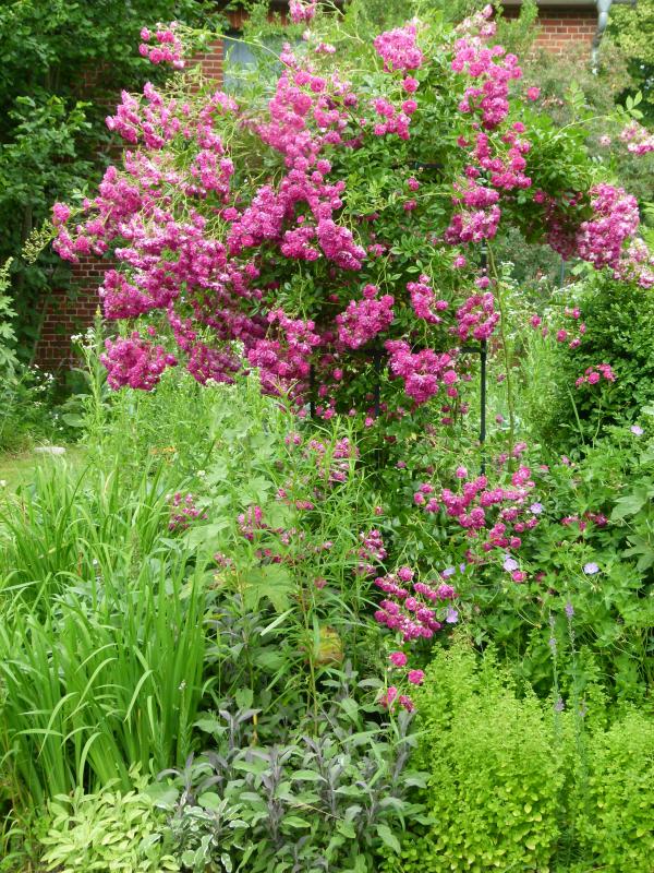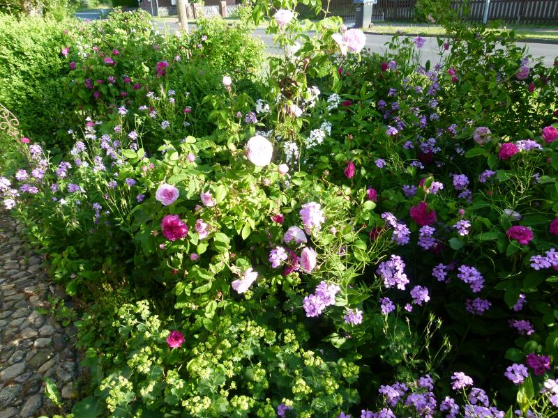 Rosiger Vorgarten, zur Rosenblüte. Sonst Wirr-Warr. :P Merke: Rosa gallica gern mir Wurzelsperre! ;)