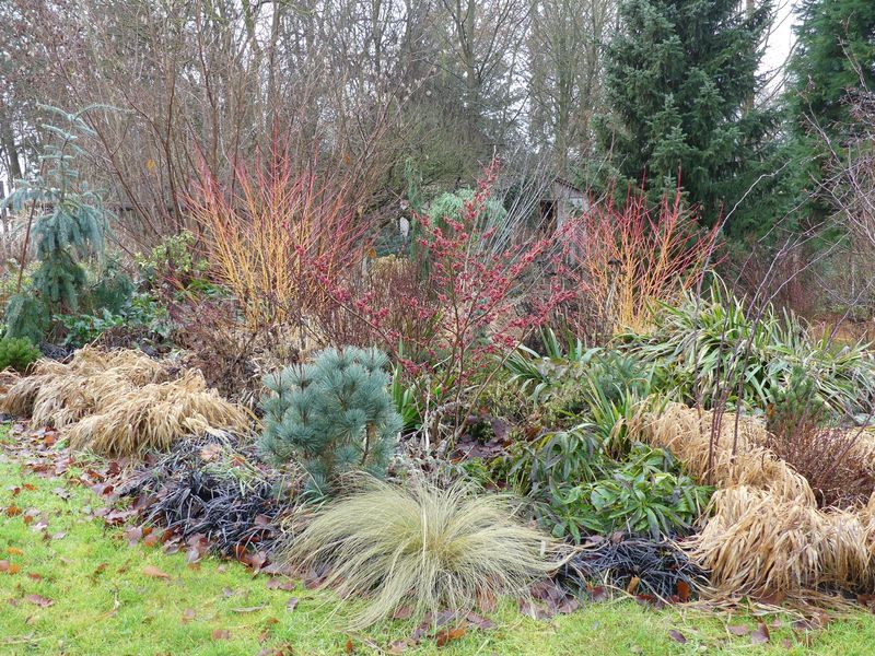 Hier im Garten ist’s tatsächlich ein Trauerspiel momentan, lediglich der Winterjasmin sorgt für etwas Farbe. Ansonsten wachsen Taglilien und Astern wie verrückt… auch Echinops, Sedum telephium, Acanthus und Eryngium. Ist das nicht noch arg früh?