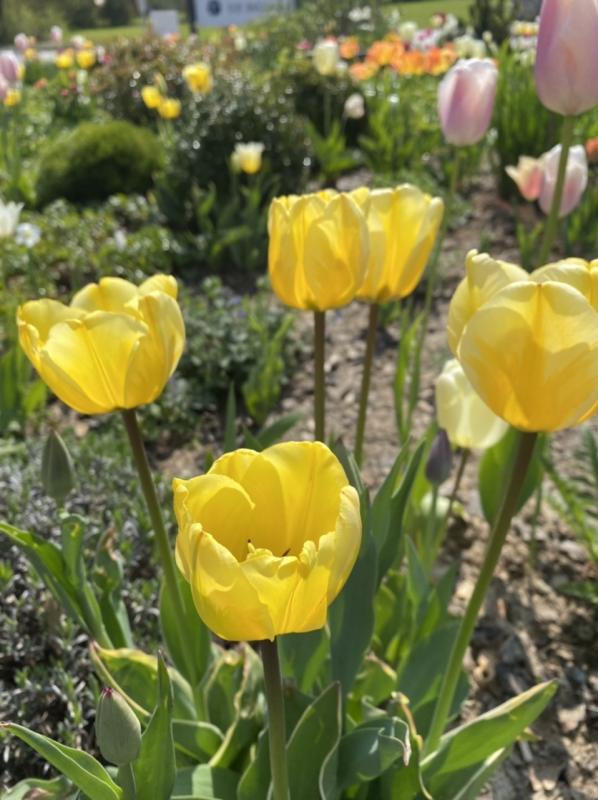 In einem großen Beet bei der Straße, pflanzen wir jedes Jahr viele Tulpenzwiebeln nach. Sie halten ja leider nicht so lang, aber weil es ein öffentliches Gebäude ist und viele Spaziergänger daran vorbeigehen, passt es irgendwie und noch behalte ich es so bei.