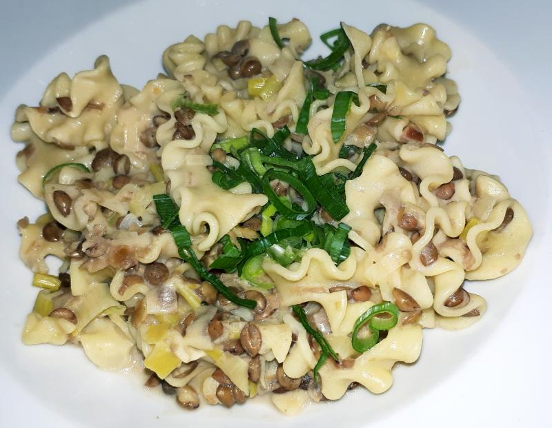 Ich hatte Lauch mit Butterbröseln, dazu Paprikasalat.