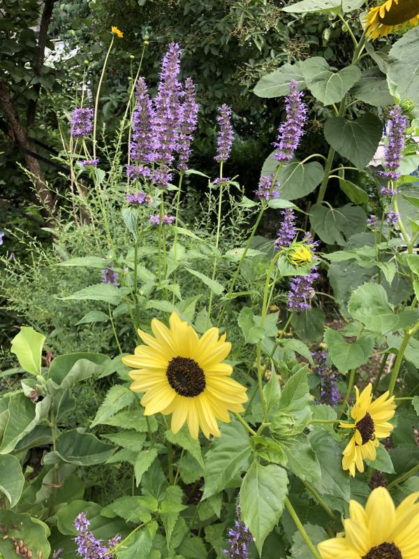 Ich lege an die Rispenhortensie an. Hier im Zusammenspiel mit Helianthus tuberosus.