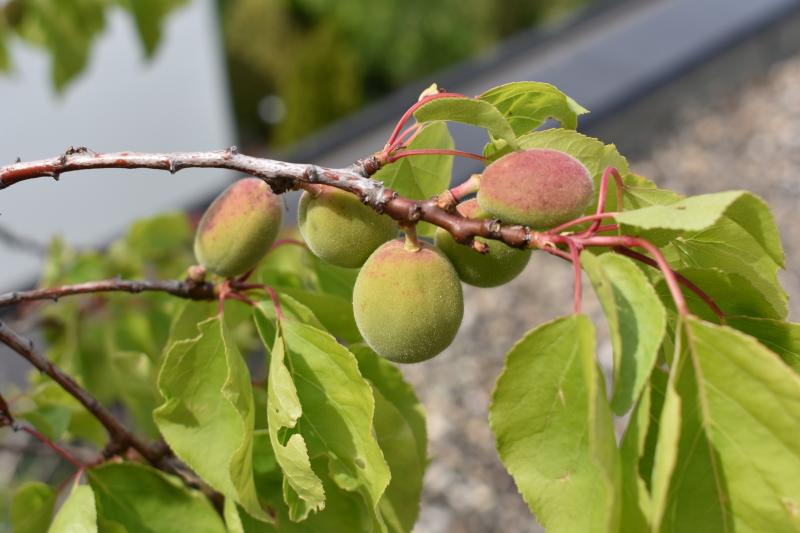 Eine Aprikose, aus kleinen aromatischen Bergaprikosen, über 30 Jahre alt, hatte zuletzt 2019 Früchte.