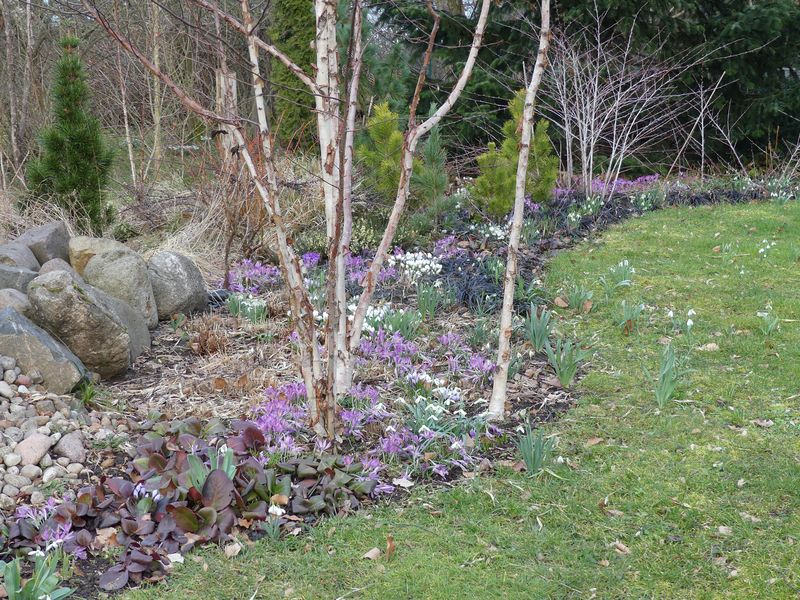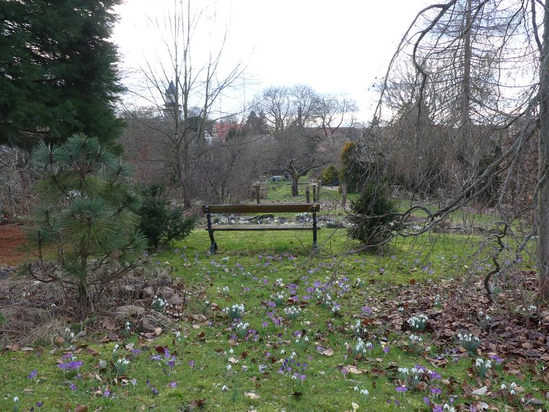 Und noch ein Blick über's zentrale Beet. Die vielen Krokusse sind auf dem Foto nur zu erahnen.