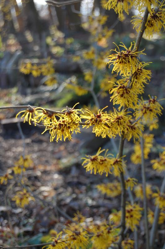 Heute beim Spaziergang ( kalt und grau ) : eine Hamamelis ist immer ein Farbtupfer und Lichtblick für die schönen Tage die noch kommen. LG aus München ( 7a/6b )