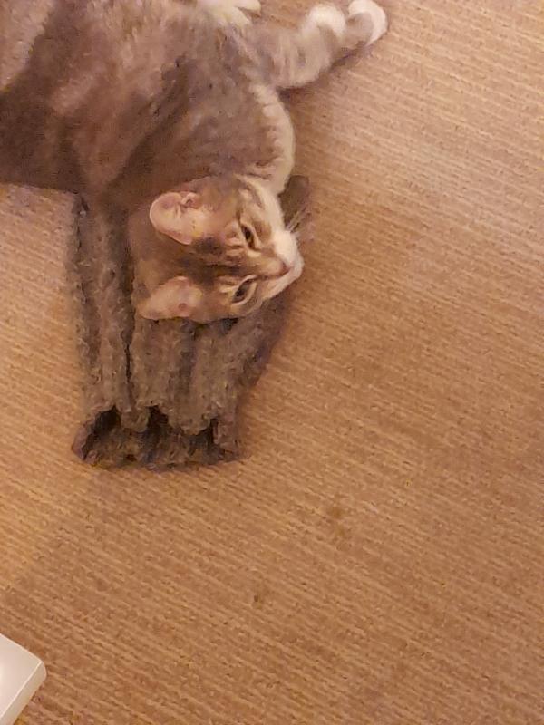 Leider konnte ich kein Foddo machen, weil ich zu dieser Tätigkeit meist kein Handy mitnehme: ich ging also ins Bad, um mich auf der bewussten Porzellanschüssel niederzulassen, da guckt mich aus dem Regal gegenüber der Schüssel, aus dem oberen Fach, unsere Kreiselin an. Ich hab mich richtig erschrocken - dort hat noch nie eine der Katzen gesessen. Das ist ca 1,6 m über dem Boden. Ich hab keine Ahnung, wie sie dort rein gekommen ist.