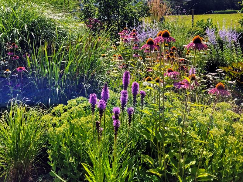 Ein Dreiklang. Sedum Herbstfreude mit Aster und Rispenhortensie: