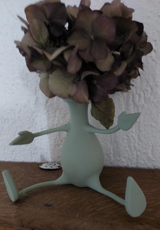 Hier eine Fazzoletto, eine Taschentuchvase, leider ohne blühenden Inhalt, da der Garten gerade nicht so viel hergibt: