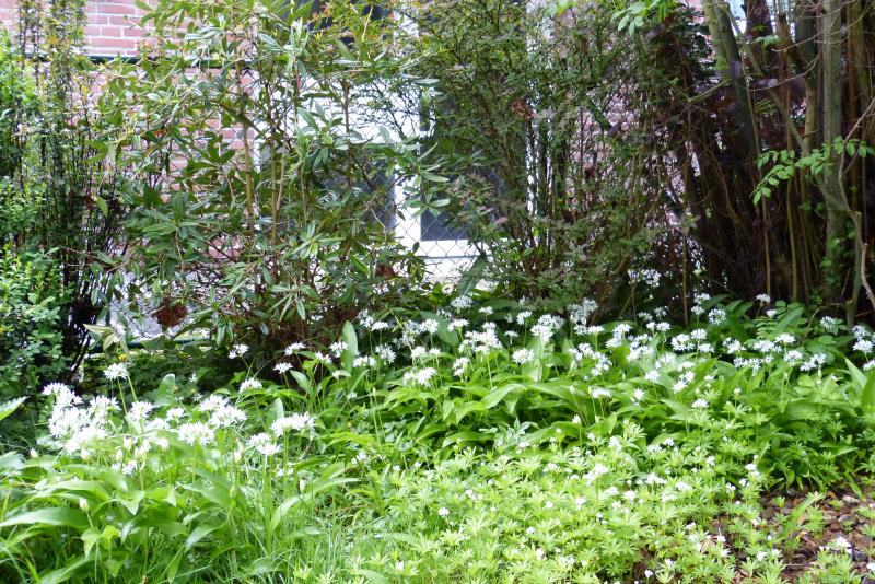 Hier hält der Sandboden den Bärlauch in Schach. In trockenen Frühjahren treibt er gar nicht erst aus. So dass ich in den ersten Jahren schon meinte, er sei ganz verschwunden. Die Zuwachsrate ist mäßig. Vor ca. 15, 16 Jahren ein Töpfchen gepflanzt, besiedelt er inzwischen vielleicht 2 qm. Das ist beherrschbar, wenn er jetzt nicht anfängt, sich jährlich zu verdoppeln.