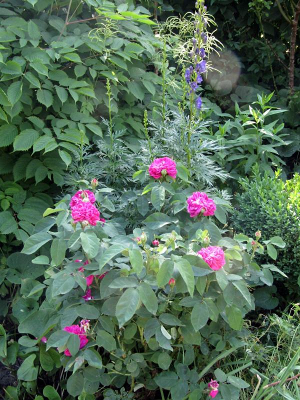 Das gibt mir die Gelegenheit, der hier herumvagabundierenden Königskerze ein kleines Denkmal zu setzen. Hier im Staudenknöterich Alba: