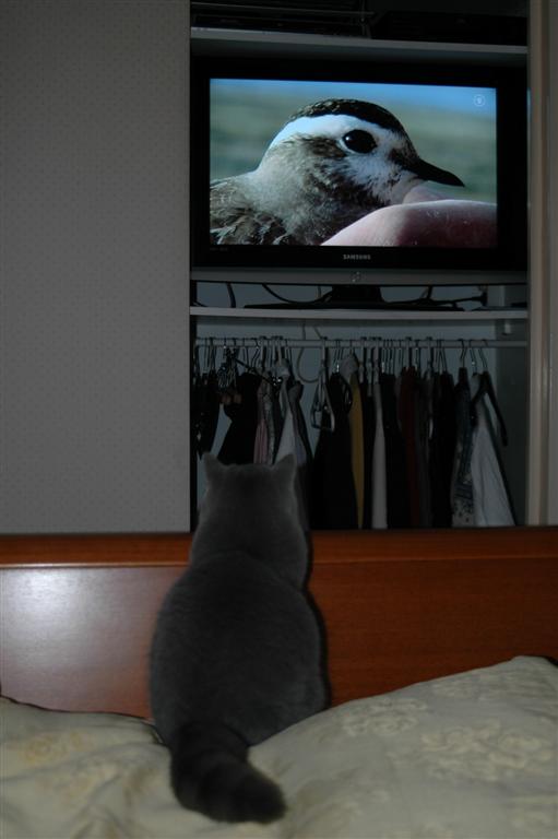 Topolino schaut auch mit Begeisterung fern, am liebsten Tierfilme mit Vögeln