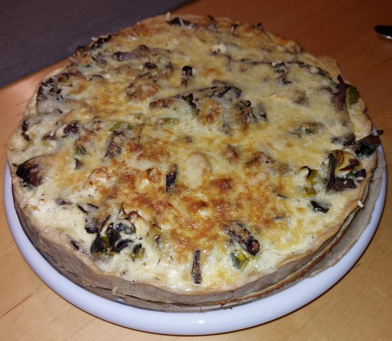 Heute Abend war unsere Katzen-Fütterin zum "Danke schön-Essen" da. Es gab Pilz-Lauch-Tarte (Champignons, Austernpilze, Maronenröhrlinge aus TK