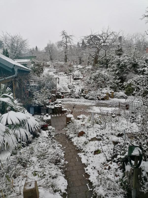 Es schneit seit heute vormittag mal mehr, mal leicht.Sauwetter.
