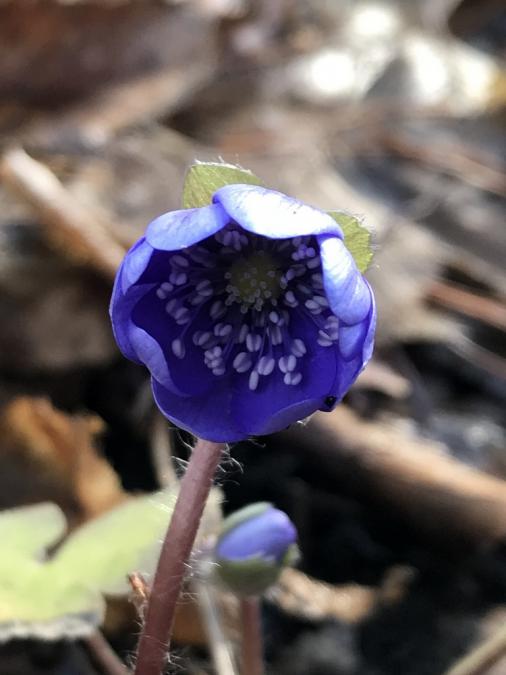 Das erste der Leberblümchen in unserem Garten, noch sehr zögerlich.