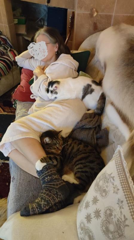 Nochmal kuscheln mit Frauchen, die beiden Dickerchen