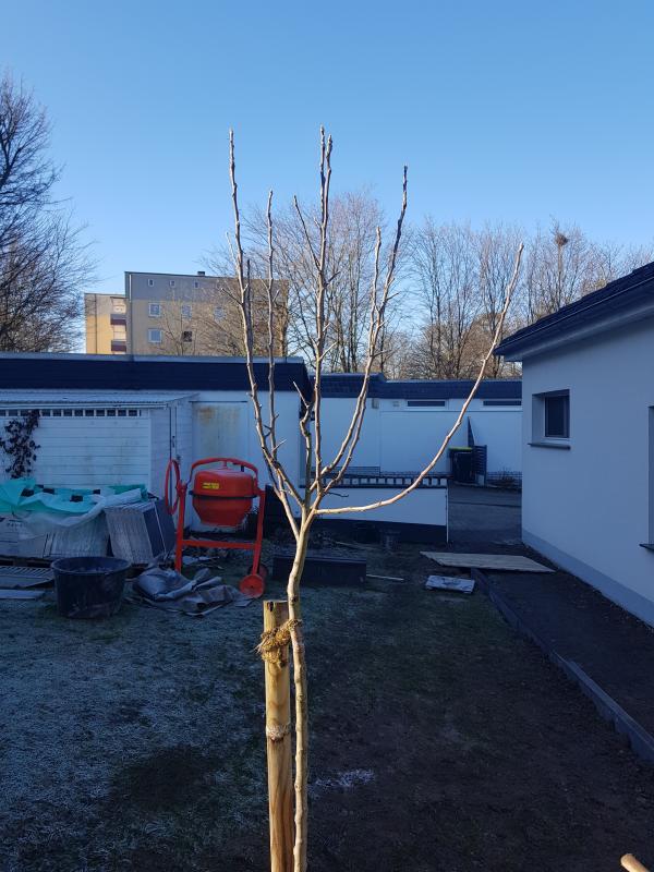 Zwetschge schwachwüchsig als Baum erzogen. Könnte knapp ein Hochstamm sein.