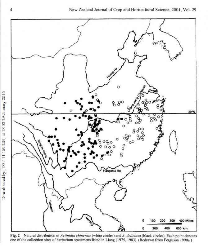 Das natürliche Verbreitungsgebiet von Actinidia Chinensis überschneidet sich in der Natur teilweise mit Actinidia Deliciosa. Letztere ist aber mehr an kalte Klimate angepasst, was man an den Überwinterungsknospen sehen kann(bei Deliciosa sind sie besser vor Kälte geschützt). Actinidia Chinensis kommt aber noch relativ weit im Norden vor u.a. in den Provinzen Shaanxi u. Henan.
