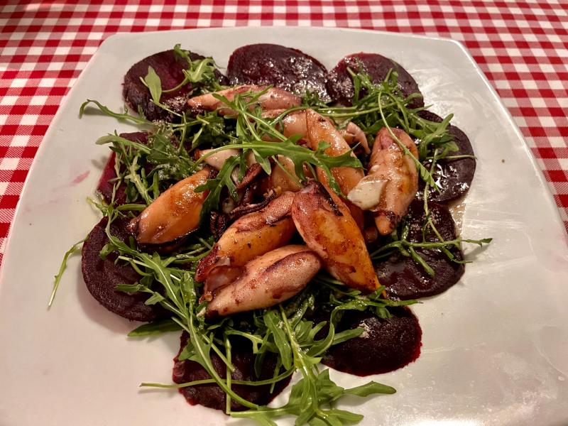 rote bete-carpaccio mit calamaretti beim italiener, in gleichgesinnter begleitung und mit eranthis zitronenfalter und galanthus rosemary burnham im gepäck. :D