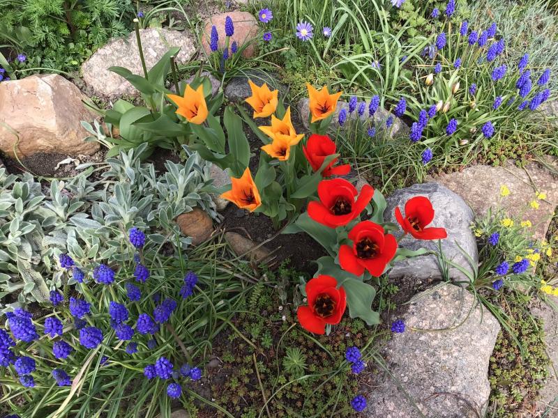 Ich habe etwas Kontrastprogramm. ;D Eine ganze Bütt voll mit Frühlingsblühern, vom Müll gerettet, darunter auch Tulpen. (Im Wasser lagen sie nur kurz ;). Mir behagt diese Verschwendung ja nicht, daher nehme ich schon mal etwas vom Müll mit und pflanze es wieder ein. :D