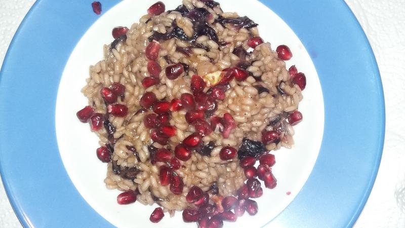 Hier gab es soeben einen allerköstlichsten Raddicchio-Orangenrisotto mit Granatapfelkernen :D