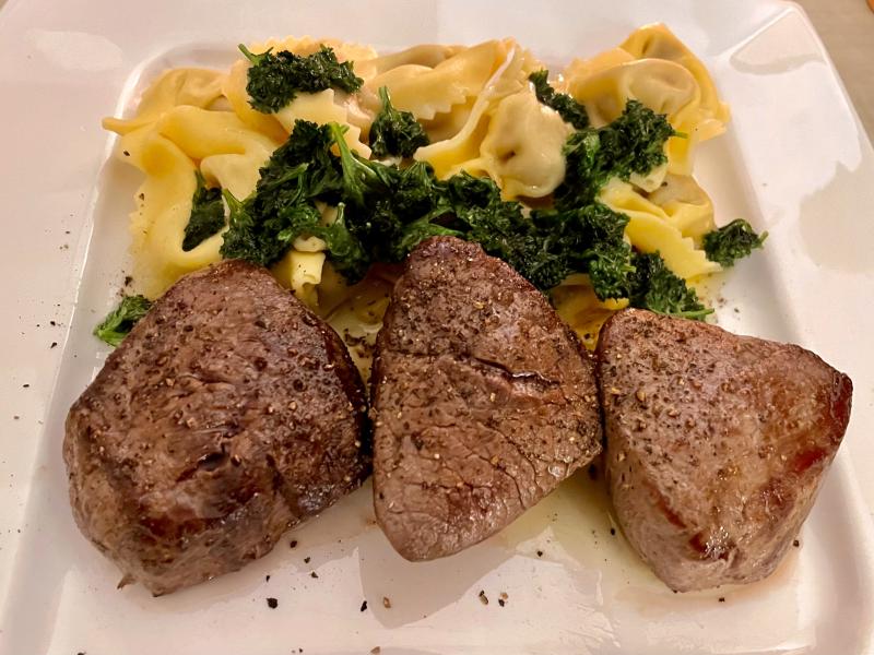 rinderfilet mit convenience-frischteig-tortelloni funghi porcini (gefüllt mit steinpilzen) und petersilie in salzbutter
