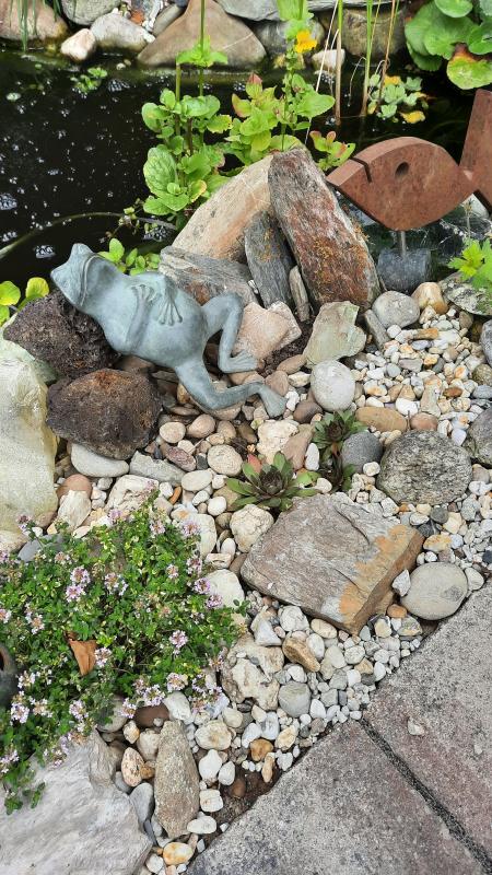 Steine mit Thymian, Fisch, Teich und Frosch