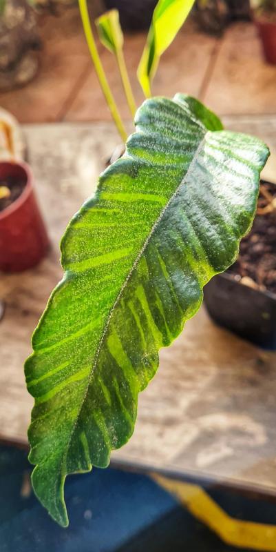Hier bin ich mir nicht ganz sicher...könnte eventuell auch die similis oder noch eine andere sein. Die stand mehrere Tage durchgefroren aber relativ geschützt auf der Terrasse. Bisher nur minimaler Blattschaden.