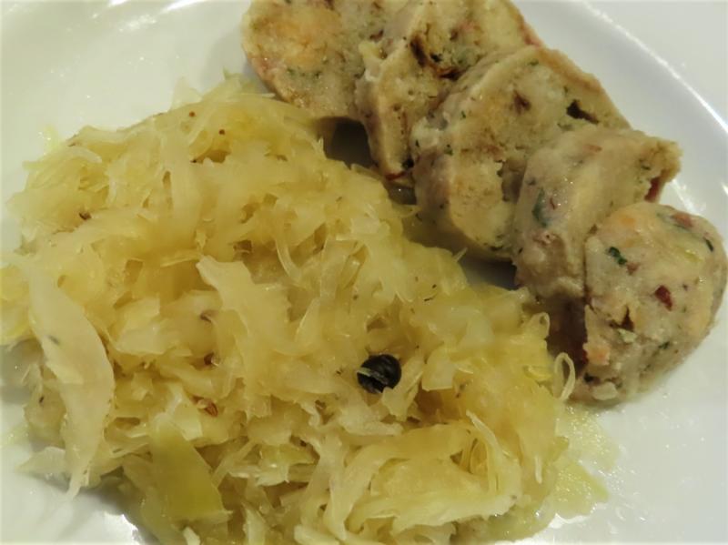Und heute gab es schwarzplentene Knödl mit Sauerkraut :D