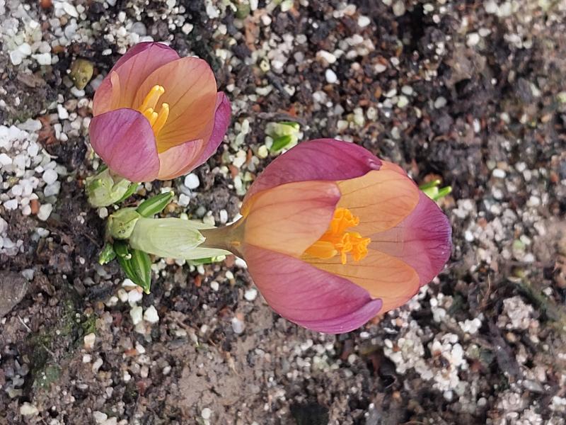 Crocus korolkowii 'Marble Tiger' auch ungeöffnet interessant.