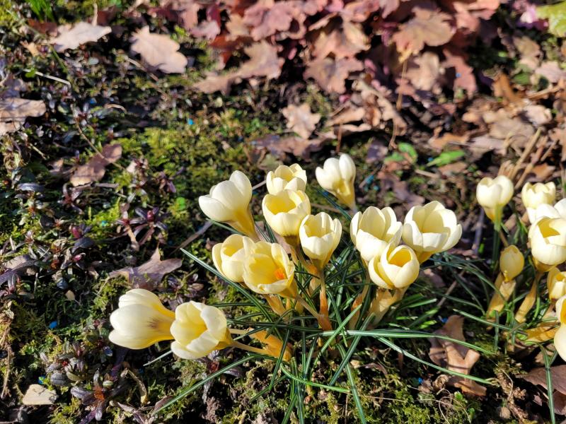 Der Balkan Crocus 'Creme Beauty ' hat Jahre für diesen schönen Tuff gebraucht. Das zarte Gelb und die kleinen, runden Blüten gefallen mir... :-*