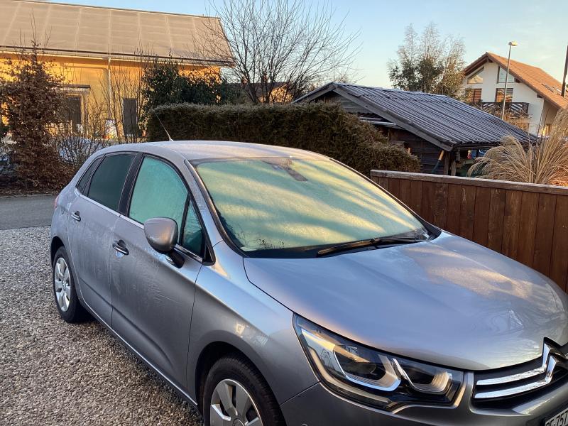 0 Grad, Raureif, die Autos sind auch bei uns angefroren. Aber die Sonne kommt raus. Sieht gut aus heute.