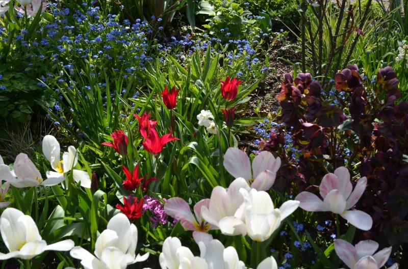 Vergissmeinnicht und Tulpen und Helleborus u.a.