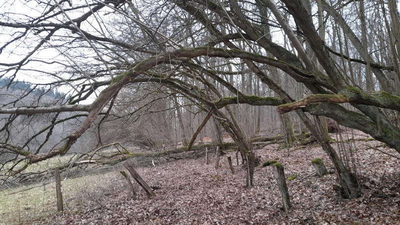 Tja. Da stand ich dann mit offenem Mund und dachte ich hätte ein Dejavue! 75 m vor dieser Stelle lag letztes Jahr eine Eiche. Und nun... ganz frisch.... wieder eine. Hinter den kapitalen Haseln für die ich dann allen Ernstes noch die Stiehl wieder auspacken muss. Da brauche ich mit der Makita nicht dran rumfeilen. Tja, und so habe ich nach Absprache mit dem Förster - hatte doch tatsächlich kurz Empfang - Stacheldraht geknipst, damit der kapitale Baum nach oben rausgezogen werden kann.