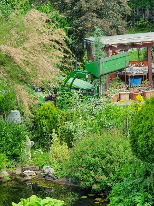 Nachbar verteilt mit seinem Traktor Mutterboden in unserem Garten und wir brauchten das nicht per Schubkarre fahren 🙈